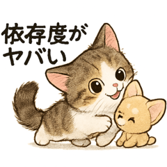 Stickers depicting an everyday scene of Princess Sukoh, a Scottish Fold, playing gracefully with a poodle.